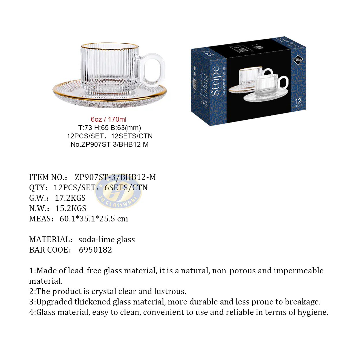 This set turns your daily tea or coffee into a special moment. It blends classic style with modern use. You can also serve espresso or small desserts in it. Each piece shows off beautiful, clear glass design.