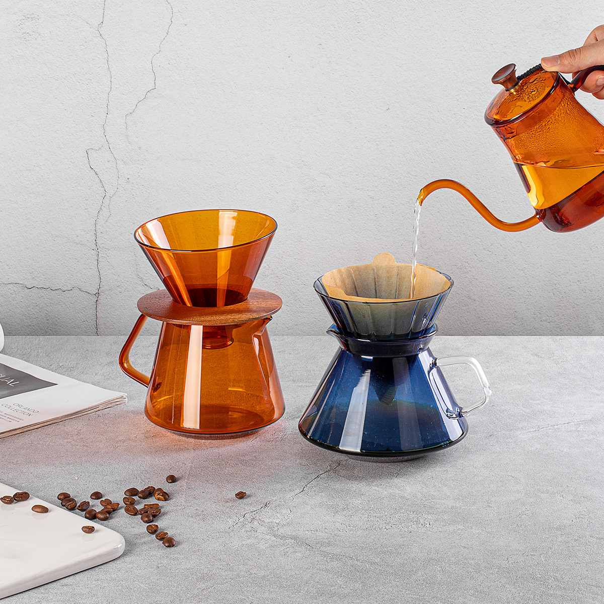 JINGHUANG GLASSWARE Coffee & Tea Sets Pour Over Coffee Makers Transparent Glass Coffee Pot