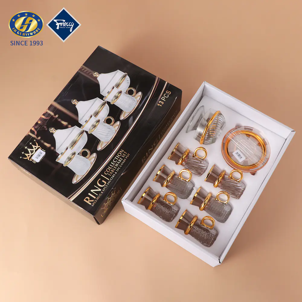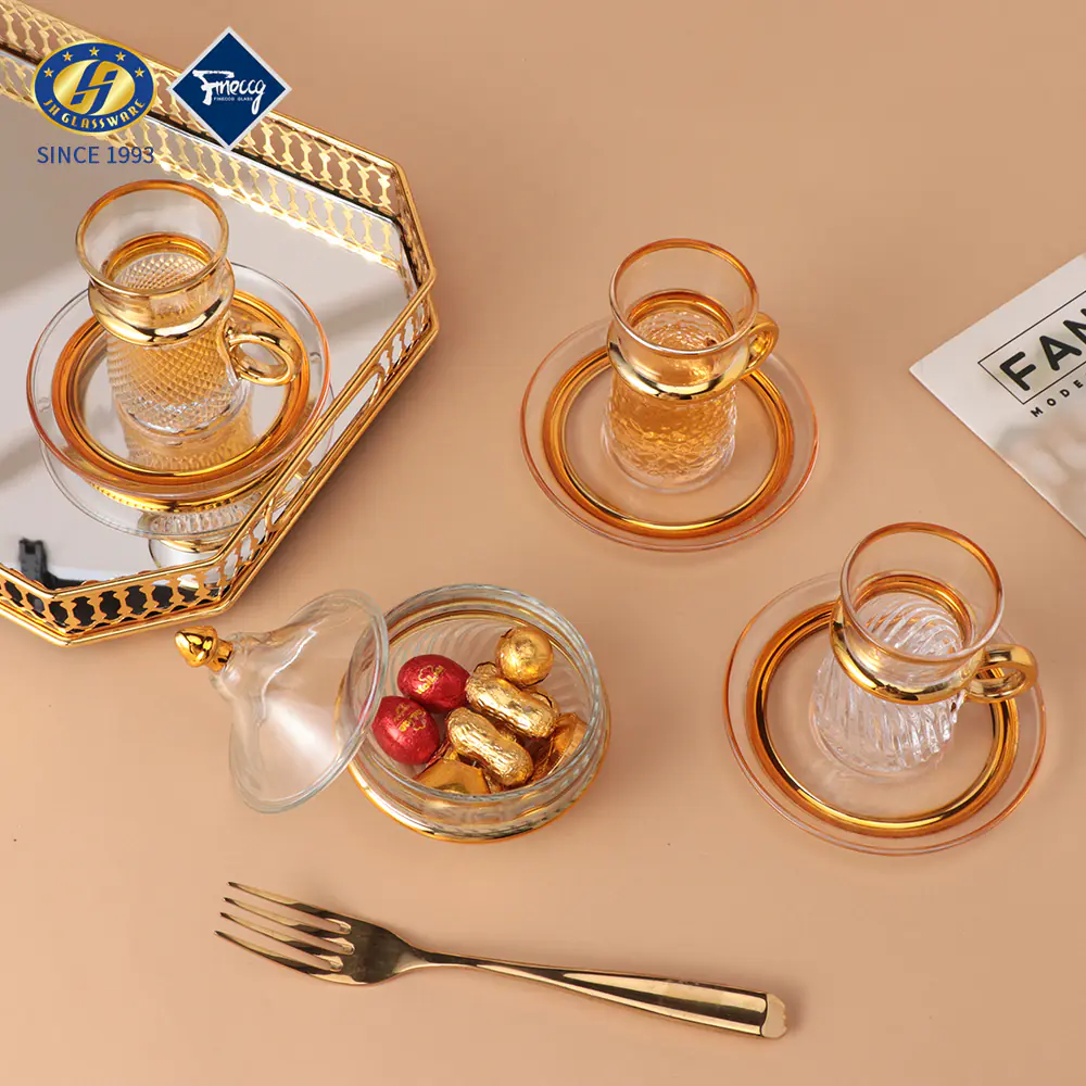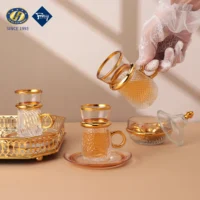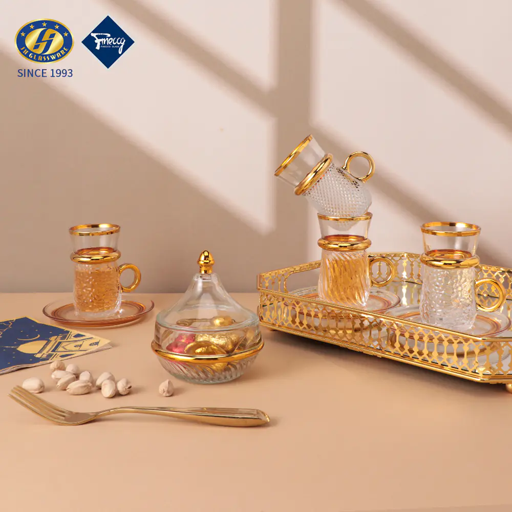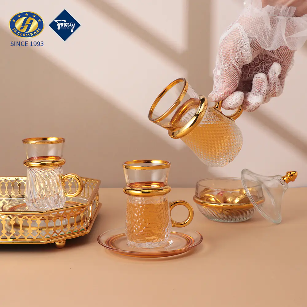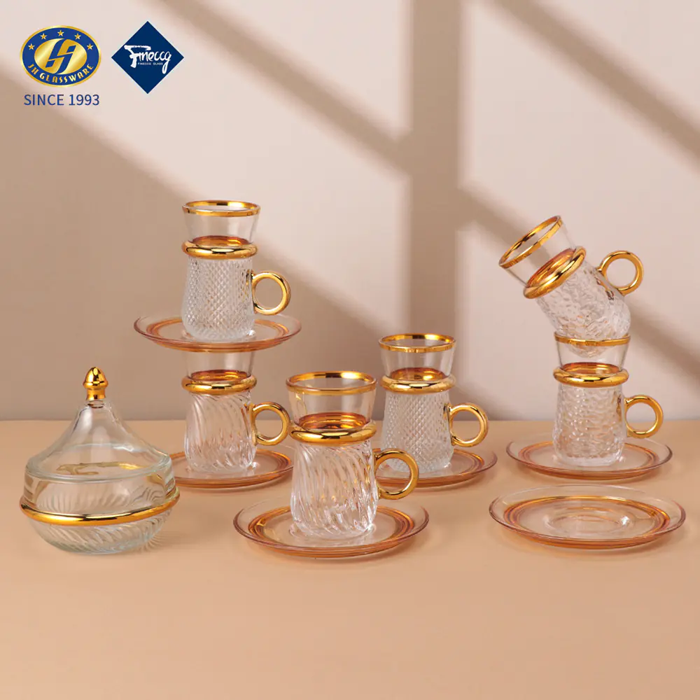 2026 Factory Direct Sale JINGHUANG 13pcs Light Luxury Arabic Espresso Glass Tea Coffee Cups Set Thin Waist Vintage Box 6 Turkish